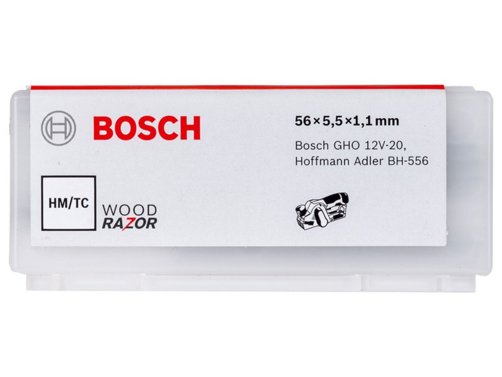 Nůž do hoblíku pro akumulátorové hoblíky - například Bosch GHO 12V-20 Professional. Rovný, tvrdokov, 40° délka× šířka: 56 mm × 5,5 mm. Oboustranný hoblovací nůž Wood Razor...