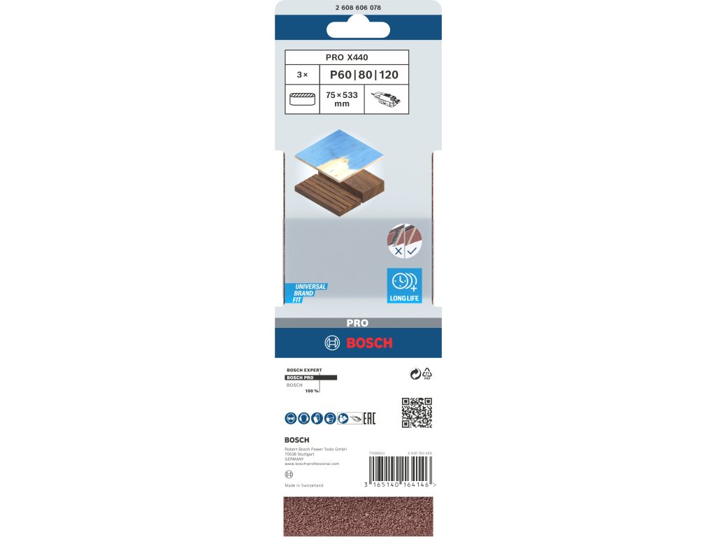 3 dílná sada brusných pásů PRO X440, 75 x 533 mm