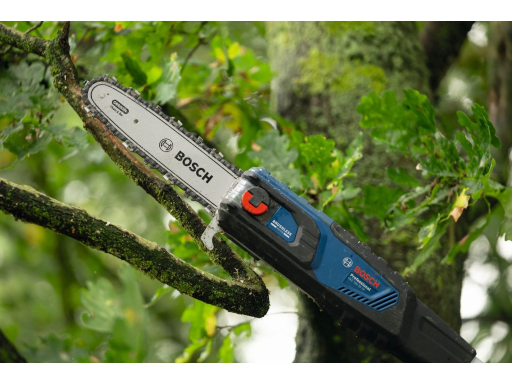 Akumulátorová řetězová pila Bosch AdvancedChain 36V-35-40 - zmákněte porážení stromů a rozsáhlé prořezávání s výkonnou, akumulátorovou řetězovou pilou.