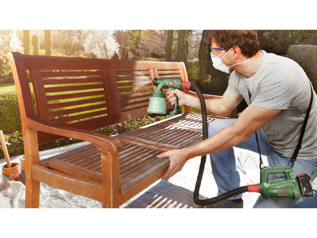 Lehké a ergonomické díky oddělené části pro nástřik a ofukování. Praktický regulátor objemu barvy EasySelect. Ramenní popruh pro bezpracný nástřik barvy. Kompatibilní s akumulátory Bosch 18V POWER FOR ALL.