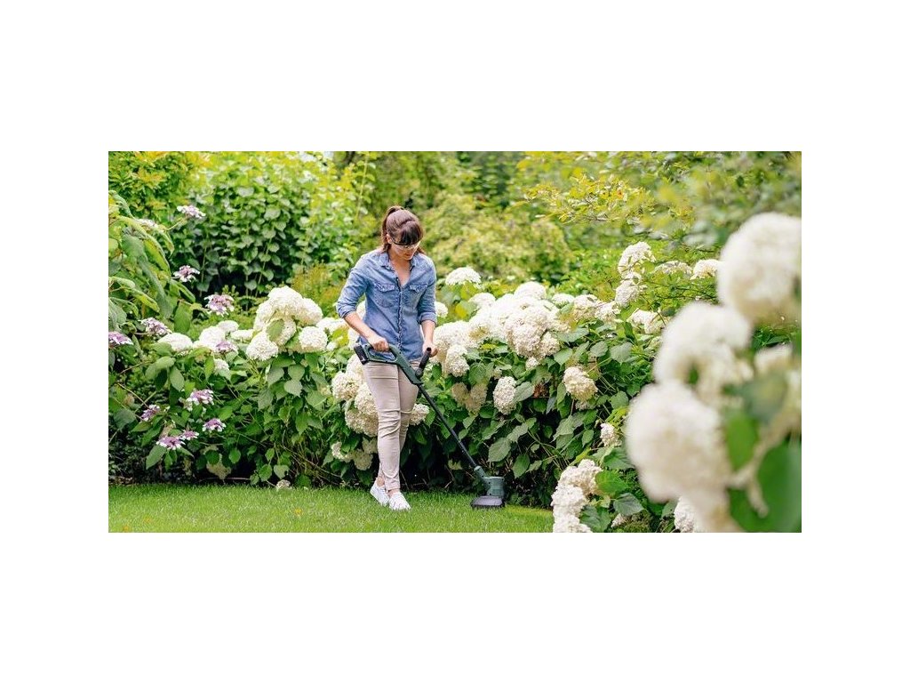 Svoboda bez kabelů a pohodlné ovládání pro nádherné zahrady bez námahy. Vyvážené a lehké pro snadné a pohodlné ovládání. Funkce pro snadné začišťování okrajů pouhým klepnutím a otočením rukojeti. Poloautomatická cívka bez starostí eliminuje nutnost ručního seřizování. Dostatečný výkon na úpravu okrajů až šesti tenisových kurtů na jedno nabití. Ideální na sečení trávy a plevelů, zastřihování trávníků a úpravu okrajů.