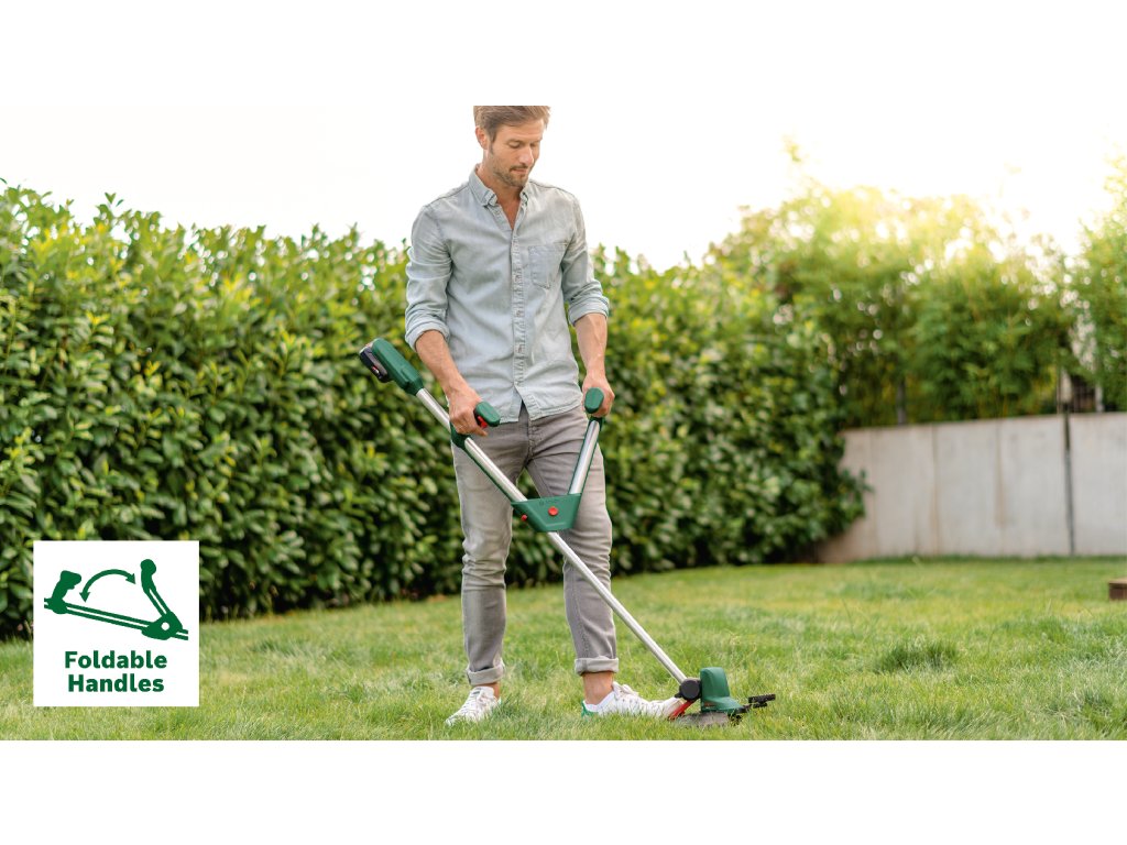 Akumulátorový systém: Baterie řady 18 V Power for ALL Bosch se používají k napájení stále se rozšiřujícího sortimentu zahradního a elektrického nářadí. Jeden akumulátor na vše – sedí ke všemu nářadí včetně zahradního ze systému Power for ALL s lithium-iontovým akumulátorem. Teleskopická násada, sada koleček, distanční oblouk na ochranu rostlin, skládací rukojeť ve tvaru písmene V, funkce náklonu, funkce na úpravu okrajů 180°.