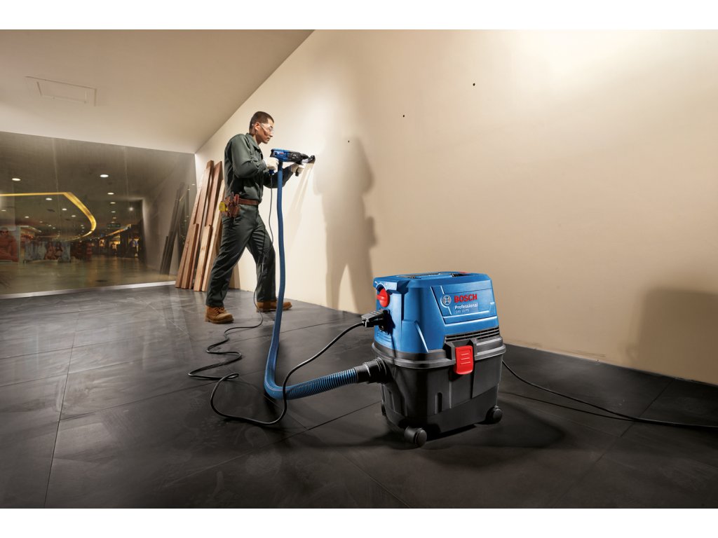 Vysavač na suché a mokré vysávání GAS 400 A nepřetržitý silný sací výkon díky exkluzivní technologii automatického čištění filtru Bosch (AFC) zvyšuje produktivitu
