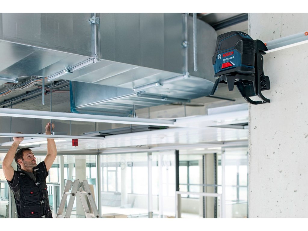 Kompaktní a všestranné pro veškeré nivelační práce až do 50 metrů. Vodorovné a svislé laserové čáry a dále dva středové kolmé body s optimální viditelností. Režim přijímače vám umožňuje pracovat s laserovým přijímačem Bosch LR 6 nebo LR 7 s pracovním rozsahem až 50 metrů. Flexibilní použití s otočným multifunkčním držákem RM 1 Professional pro vyrovnávání laserových čas a mnohostranné možnosti upevnění.