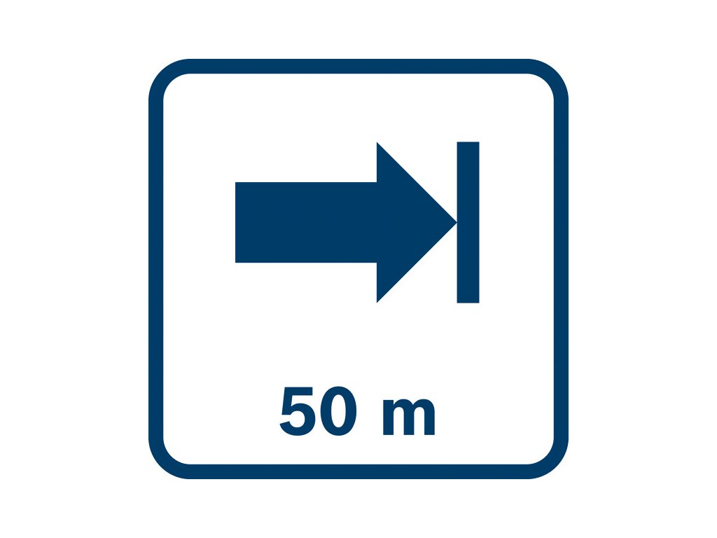 Pracovní rozsah s přijímačem, hodnota 50 m