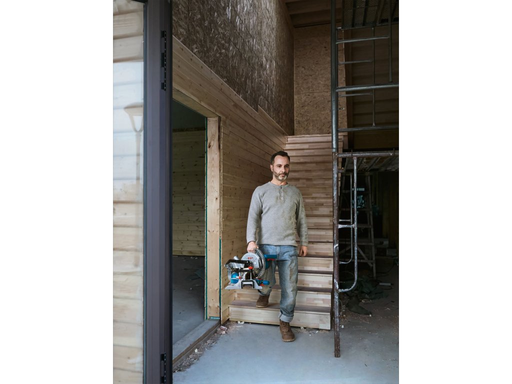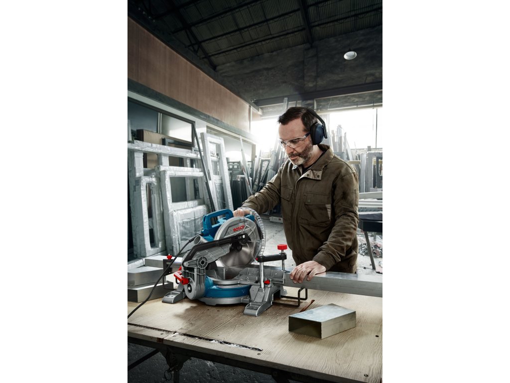 Pokosová pila se zákluzem Bosch GCM 350-254 Professional. Vysoká řezná kapacita a variabilní otáčky pro nejrůznější druhy použití.