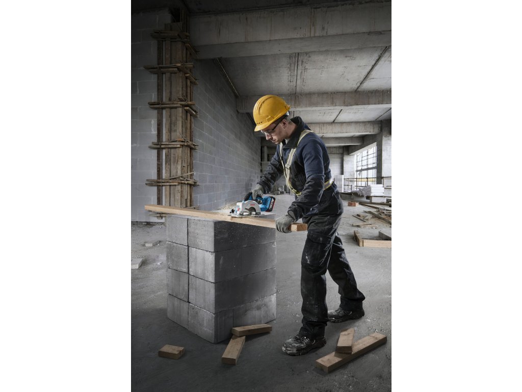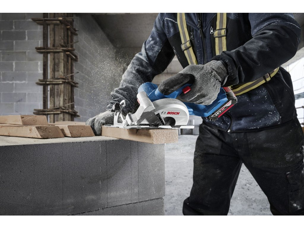 Akumulátorová okružní pila Bosch GKS 18V-68 C Professional. Maximální řezný výkon s akumulátorem: zcela se vyrovná síťovým 1 800 W verzím nářadí díky nové bezuhlíkové...