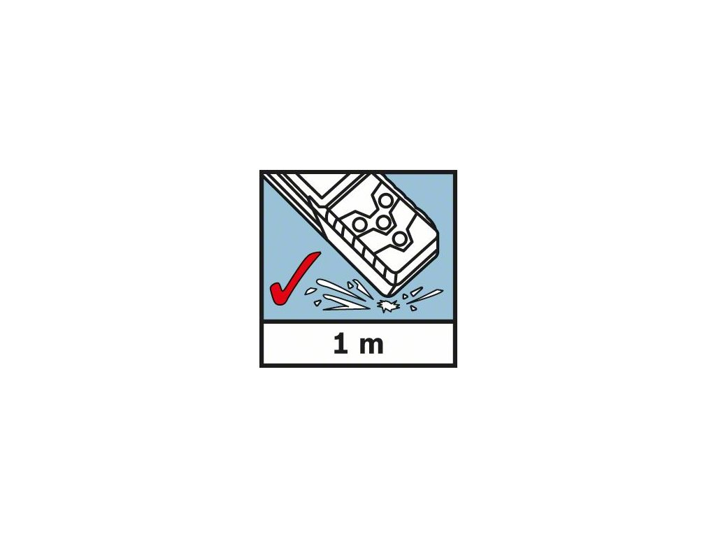 Kromě vestavěné ochrany proti prachu a stříkající vodě se laserový dálkoměr GLM 40 Professional rovněž vyznačuje robustním nárazuvzdorným krytem, který chrání nářadí před poškozením při pádu z výšky až 1 metr.