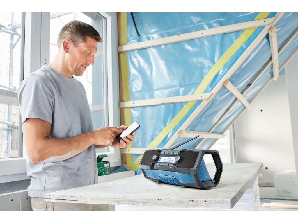 Vynikající zvuk, který je stále s vámi: flexibilní a přenosné digitální rádio na pracoviště. Mimořádná flexibilita pro příjemnou práci: zdroj z DAB+, Bluetooth, FM či AUX. Vyznačuje se intuitivní obsluhou a rychlým nastavením v kombinaci s rukojetí a háčkem pro svislé i vodorovné umístění. Jedinečný stereozvuk díky možnosti spárovat dvě rádia s jedním chytrým telefonem.