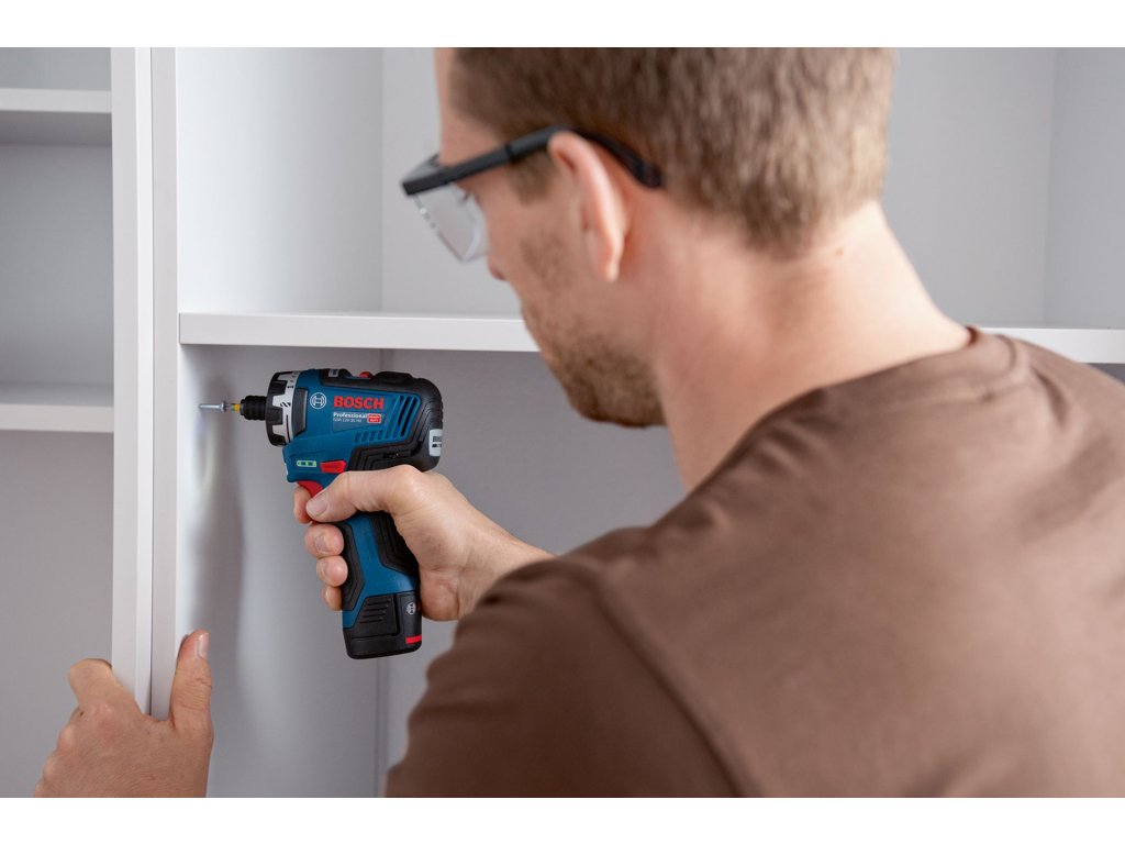 Praktické balení 2 nářadí v jednom. Nasvícení pracovního prostoru s kombinovanou sadou vrtacího šroubováku 2 v 1 + pracovní svítilny. Akumulátorový šroubovák Bosch GSR...