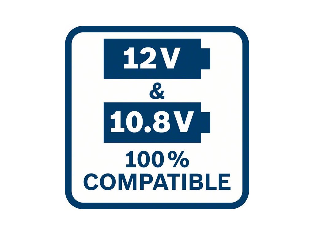 Set obsahující 2x akumulátor Bosch GBA 12 V s 3,0 Ah kapacitou. Profesionální 12V systém – 100% kompatibilní s nářadím 10,8 V a 12 V.