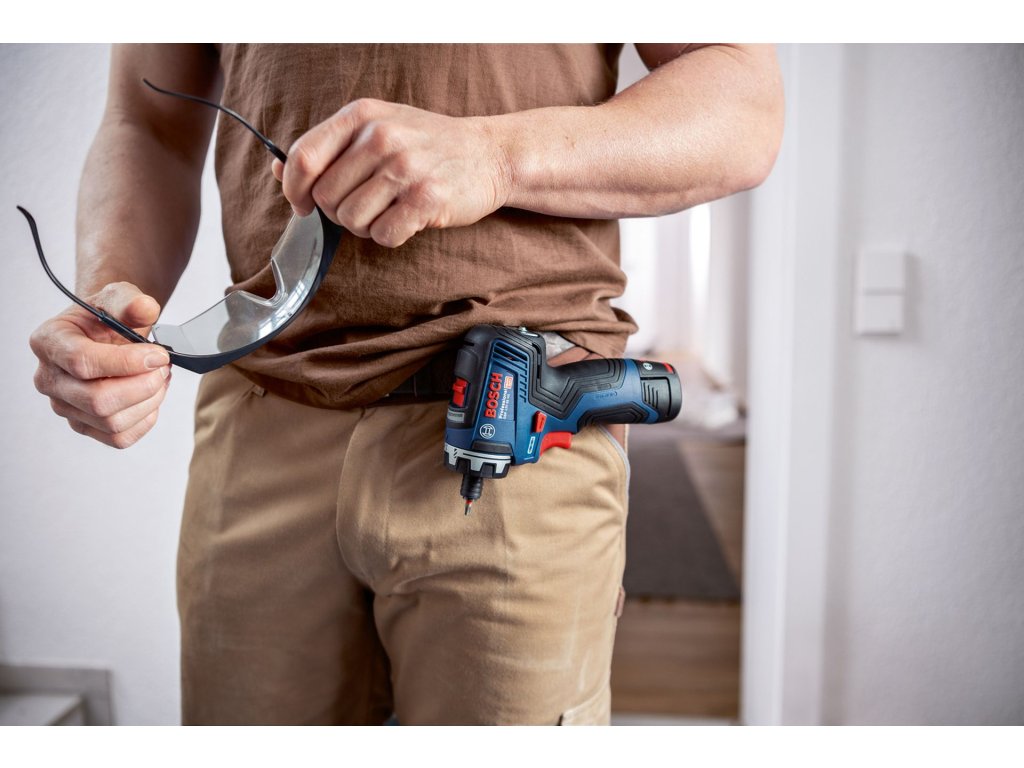 Praktické balení 2 nářadí v jednom. Nasvícení pracovního prostoru s kombinovanou sadou vrtacího šroubováku 2 v 1 + pracovní svítilny. Akumulátorový šroubovák Bosch GSR...