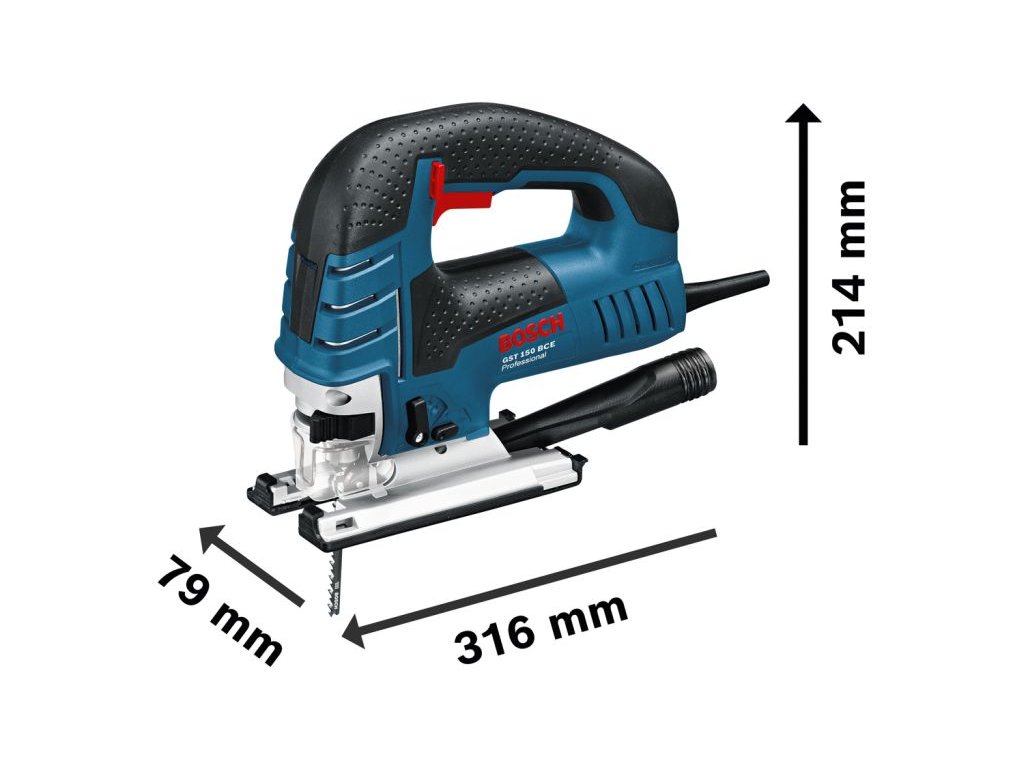 Bosch GST 150 BCE Professional je síťová robustní kmitací pila pro drsné použití. Díky obloukové rukojeti se spouští s variabilními otáčkami se s nářadím hladce manipuluje a snadno se ovládá. Kmitací pila se vyznačuje mimořádně robustní základnou odolnou vůči ohnutí, která zaručuje vysoký výkon i při těch nejdrsnějších pracích. Spolehlivý 780W motor a konstantní otáčky zajišťují řezání i těch nejtvrdších materiálů, například tlustých trámů. Toto nářadí je určeno pro zaoblené řezání pevného dřeva, dřevotřísky a dřevěných kompozit. Je kompatibilní se systémem Bosch Click & Clean i s jinými vysavači Bosch. Bosch GST 150 BCE Professional