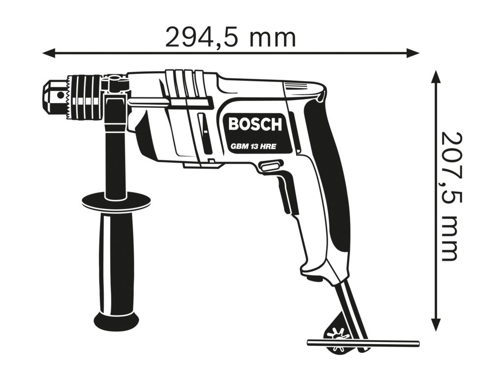 Bosch GBM 13 HRE Professional je síťová jednostupňová vrtačka s robustní konstrukcí. Její silný 550W motor dodává výkon potřebný pro náročné vrtací aplikace. Tato vrtačka se třemi převody a vysokým krouticím momentem 60 Nm je schopna vrtat i ty největší průměry otvorů do různých materiálů, což umožňuje práci v široké škále situací. Rovněž nabízí maximální odolnost a je vybavena ozubenými koly, kuličkovými a jehlovými ložisky a robustním kovovým krytem převodovky.