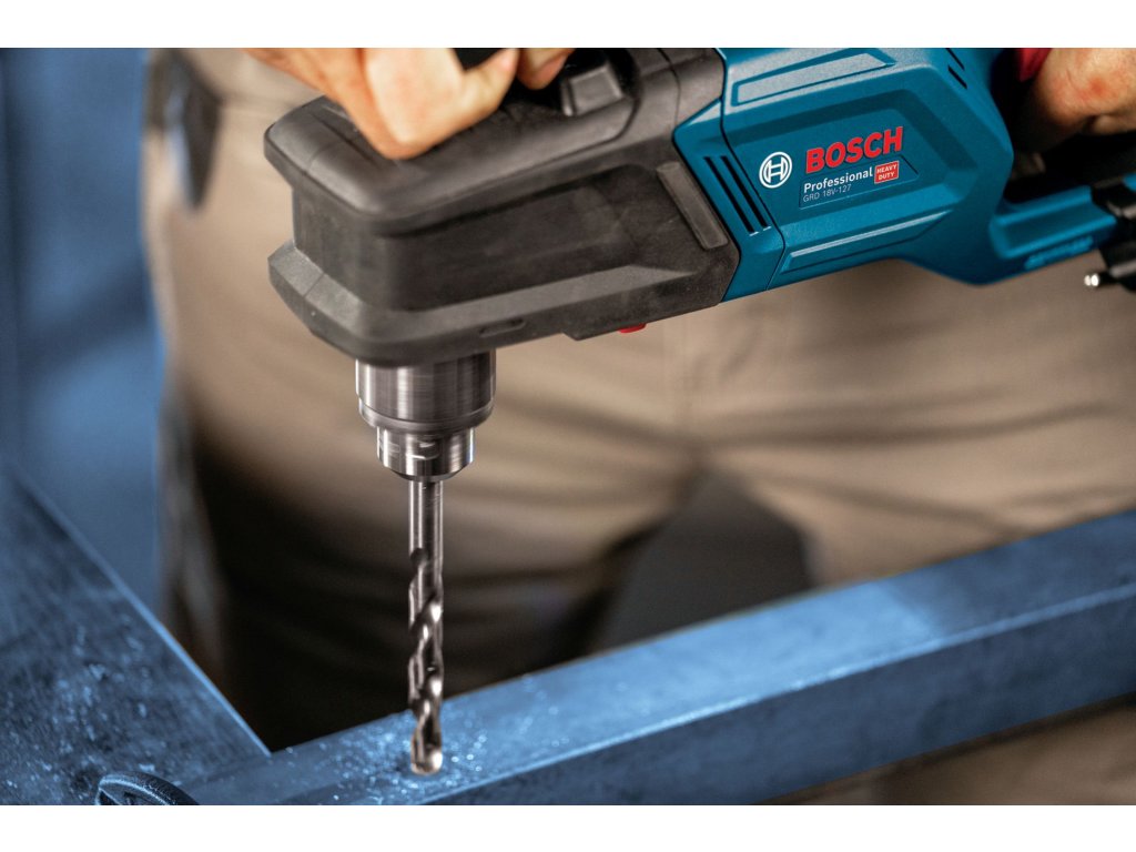 Akumulátorová úhlová vrtačka Bosch GRD 18V-127 Professional nabízí nejlepší kontrolu díky technologii Advanced KickBack Control. Tato technologie minimalizuje riziko zranění, pokud se vrták zasekne nebo se nářadí pomalu otáčí kolem své osy vrtání a přídržná síla se pomalu zvyšuje. Tato pravoúhlá vrtačka má 2 nastavení rychlosti: vysokou pro rychlé hrubé vrtání s 1 800 ot/min a pomalejší s 550 ot/min pro velké průměry, což nabízí plnou flexibilitu. Výkonné nářadí GRD 18V-127 Professional zvládá velké zatížení a díky výkonné technologii bezuhlíkového motoru zajišťuje vrtání s měkkým krouticím momentem 70 Nm. Kromě toho se díky ergonomickému designu rukojeti pohodlně používá.