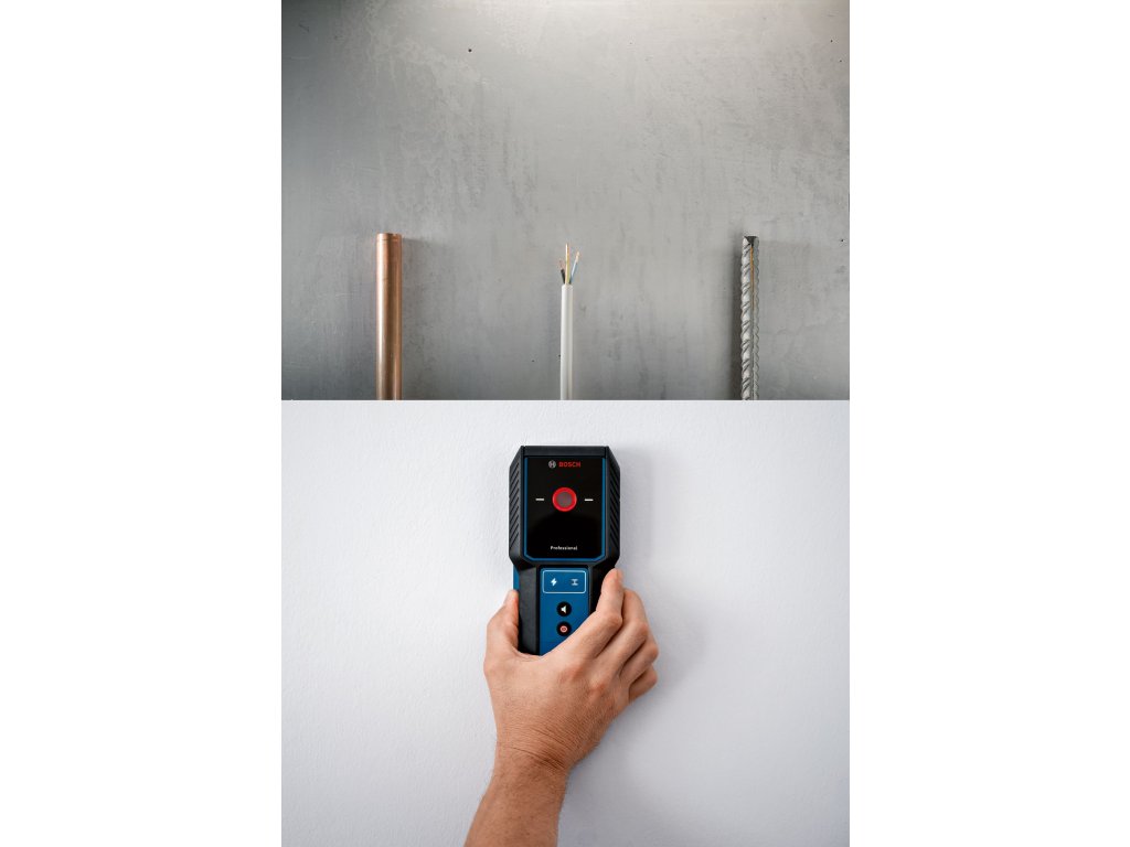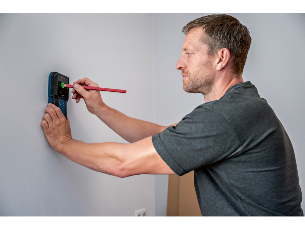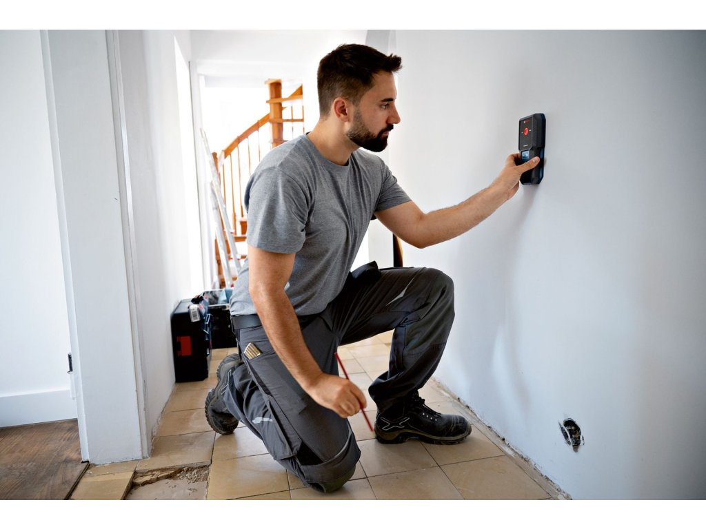 Snadná detekce: intuitivní detektor stěn odhalí kovy a vodiče pod napětím. Detekuje kov a vodiče pod napětím za stěnou a dodává jistotu. Snadné používání s jedním režimem a vyznačovacím otvorem. Stvořeno pro práci na drsných staveništích díky pryžovému krytu tlumícímu nárazy a stupni krytí IP54.