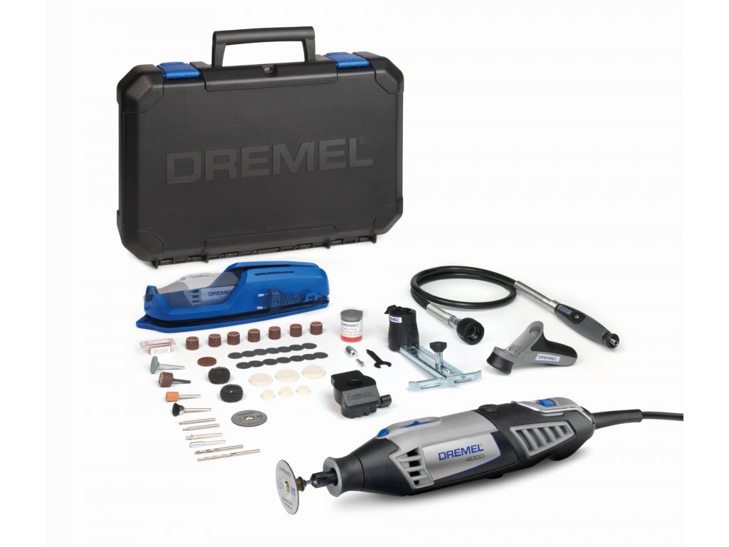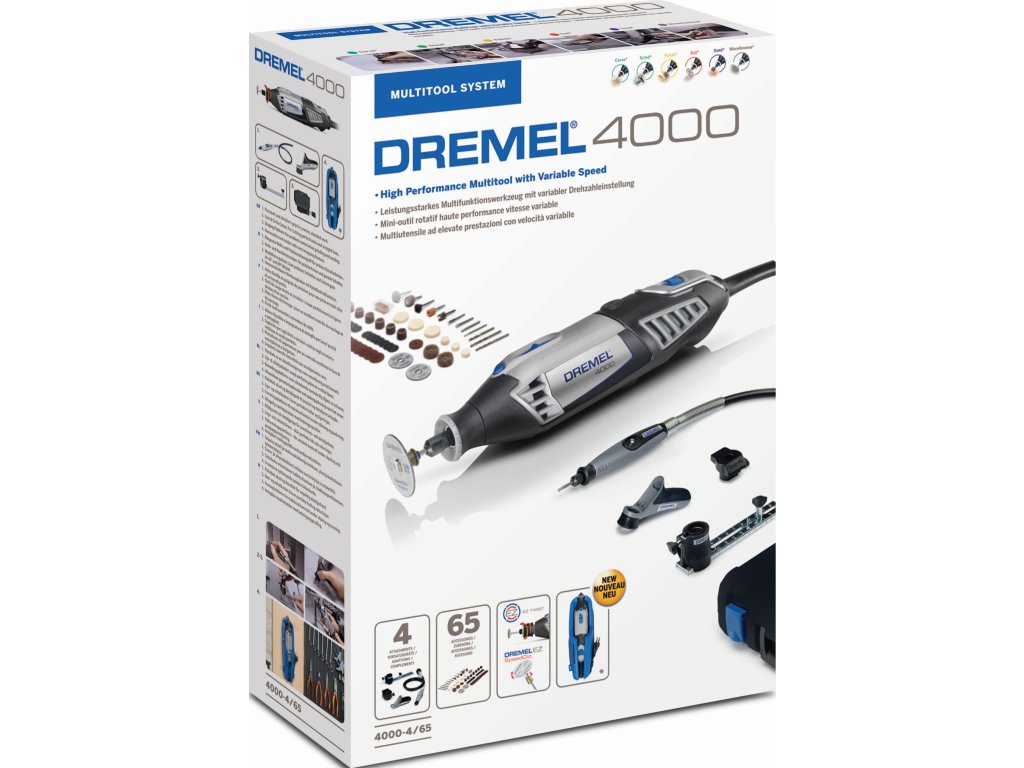 Tato sada zahrnuje vysoce výkonné univerzální nářadí DREMEL 4000 s inovativními vlastnostmi, jako je upínací pouzdro EZ Twist, elektronická zpětná vazba a blokovací funkce upínání, s rozsahem otáček 5 000 až 35 000 ot/min. DREMEL 4000 zvládne i ty nejjemnější a nejdetailnější práce v neobvyklých a těsných prostorech. Variabilní rychlost otáček se reguluje nezávisle na vypínači, takže se můžete vrátit k projektu přesně tam, kde jste přestali. Vysoce výkonný motor a elektronická zpětná vazba poskytují nepřetržitou maximální sílu. Tato sada Dremel zahrnuje univerzální nářadí DREMEL 4000, 4 nástavce a 65 kusů originálního příslušenství DREMEL. To vše je přehledně uspořádáno v kufříku, který obsahuje také vyjímatelný organizér na příslušenství a držák nářadí a kabelu na zeď EZ Wrap.