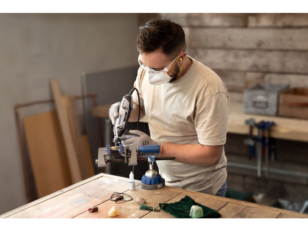 DREMEL 2222 umožňuje praktické zavěšení univerzálního mikronářadí DREMEL nad pracovním stolem. Ideální ve spojení s ohebnou hřídeli DREMEL 225.