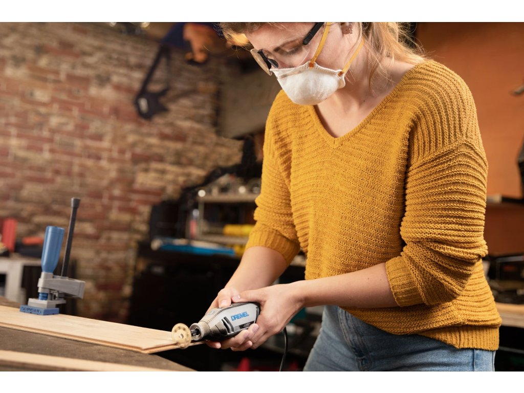 Komfortní bezpečnostní kryt DREMEL® 550 - Jednoduše jej našroubujte na své univerzální nářadí Dremel, najděte si vhodný úchop, upravte polohu nástavce a pusťte se do projektu.