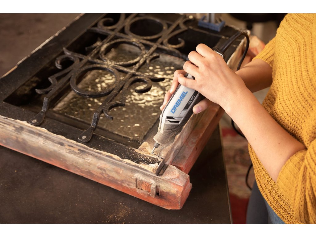 Mikronářadí Dremel® 4250 - maximální výkon doplňuje s vysoce kvalitní a odolnou konstrukcí.S touto kompletní sadou 4250, která obsahuje 45 kusů příslušenství, tři nástavce a dvě...