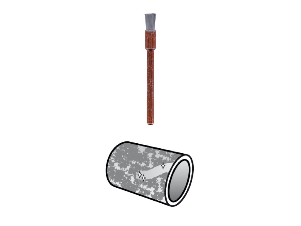 Drátěné kartáčky DREMEL 532 z nerezové oceli nezpůsobují „následné rezivění“ materiálů odolných proti korozi, jako jsou cín, hliník a nerezová ocel.