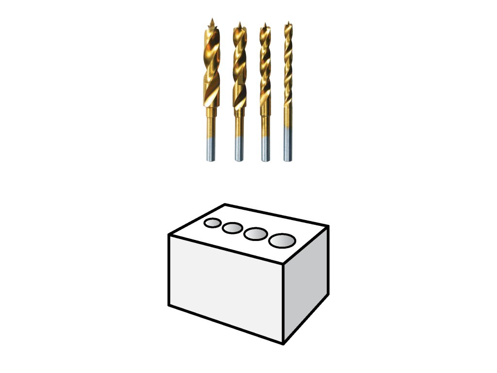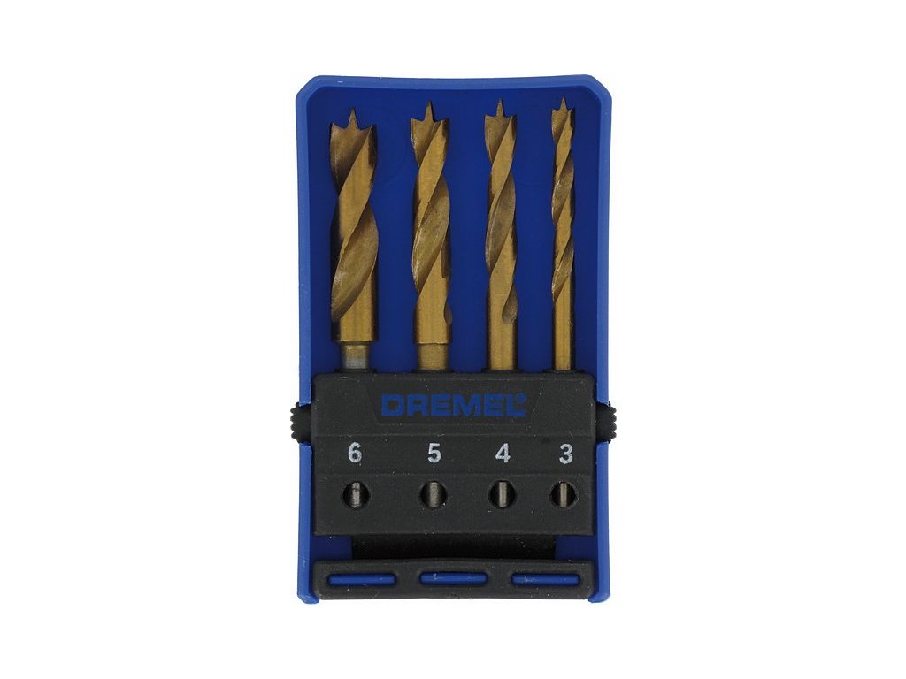 Sada vrtáků na dřevo DREMEL 636 obsahuje 4 vrtáky se středicím hrotem pro vrtání do dřeva. Sada obsahuje průměry 3, 4, 5 a 6 mm. Titanová povrchová vrstva zajišťuje vysoký výkon a delší životnost.
