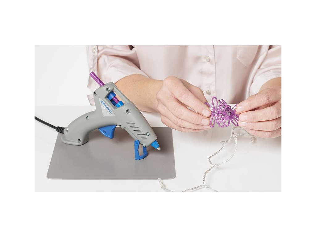 DREMEL 910 je vysokoteplotní (165 °C) lepicí pistole s hrotem pro přesné lepení a ochranou proti kapání.