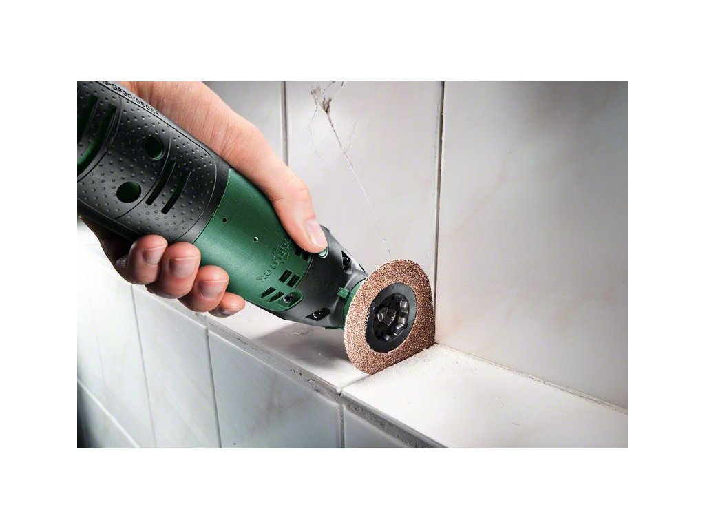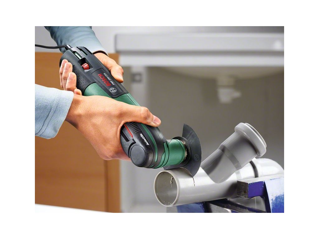 Flexibilně použitelný pomocník díky velkému počtu inovativního příslušenství Bosch Starlock. Snadná výměna příslušenství bez použití nástrojů za pouhé 3 sekundy díky novému systému AutoClic. Téměř bezprašné broušení umožňuje odsávání prachu, které lze připojit k univerzálnímu vysavači. Přesné a jemné zanoření díky zaobleným řezným hranám ponorného pilového listu s Curved-Tec. Dodržování přesné hloubky řezu pomocí čtyřstupňového hloubkového dorazu. Konstantě vysoký výkon i při zatížení díky Bosch Constant-Electronic. Optimální vedení díky volitelnému připevnění přídavné rukojeti. Rychlý postup práce díky výkonnému 250W motoru. Práce přizpůsobená materiálu a příslušnému použití pomocí plynulé předvolbě otáček.