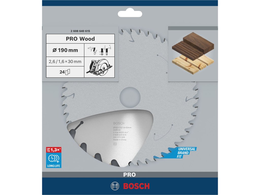 Pilový kotouč Bosch PRO Wood pro okružní pily, 190 x 30 x 2,6 mm, 24 zubů