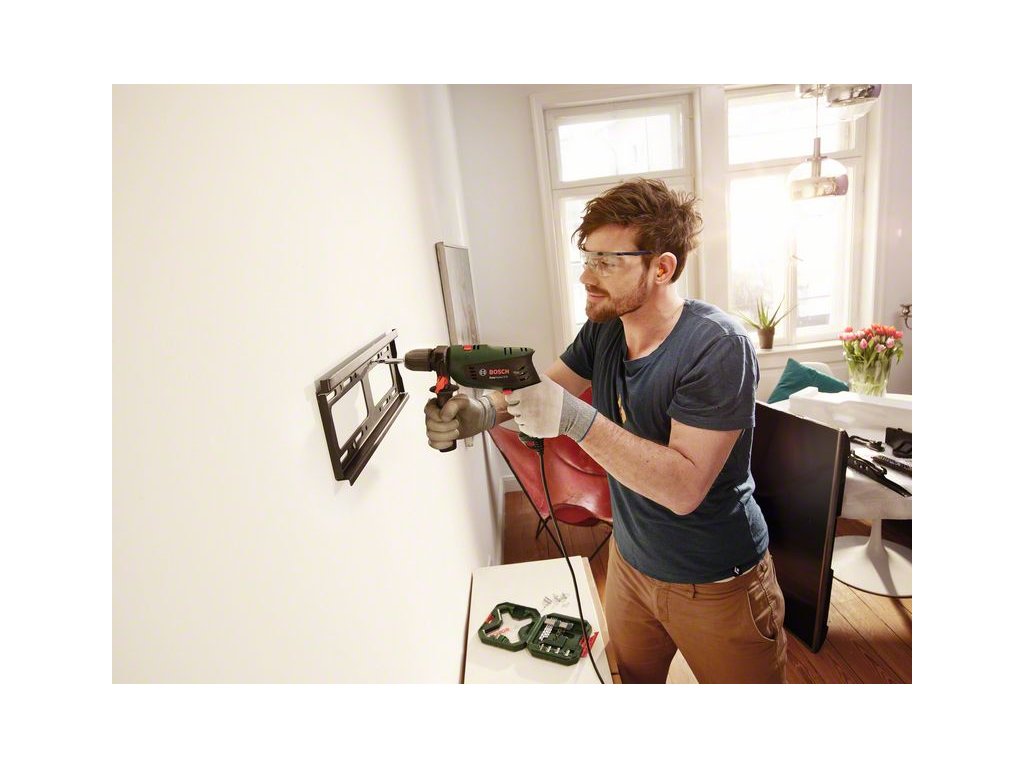 Vrtání ještě nikdy nebylo jednodušší – díky nepřekonatelně nízké hmotnosti a kompaktnímu, ergonomickému designu je manipulace s nářadím mimořádně snadná. Velký vrtací výkon i při kompaktní konstrukci: S tímto kompaktním silákem od firmy Bosch bude jednoduché vrtání hračka – a to do všech materiálů, dokonce i do betonu. Rychlá a jednoduchá výměna nástroje díky jednoobjímkovému rychloupínacímu sklíčidlu s funkcí Bosch Auto-Lock. Přepínač funkcí šroubování/vrtání/vrtání s příklepem pro práci přizpůsobenou druhu materiálu. Řízení otáček pomocí elektroniky Bosch: Regulace otáček z 50 na max. pomocí spínače v rukojeti vám umožní snadné dávkování otáček při práci, například při předvrtávání otvorů do hladkých ploch nebo při šroubování. Kompatibilní s vrtací pomůckou Bosch pro ještě přesnější práci: Jednoduché nastavení hloubky vrtání a bezprašná práce (lze obdržet jako příslušenství). Přídavná rukojeť s protiskluzovou funkcí: Tvarový styk zabraňuje sklouznutí přídavné rukojeti z upínacího krku. Nový ergonomický design s větší měkkou gumovou tlumicí vložkou pro nejlepší manipulaci. Chod vpravo a vlevo: ideální také pro šroubování. Komfortní práce díky integrovanému spínači trvalého chodu. Vedení kabelu se závěsným okem pro praktické uložení