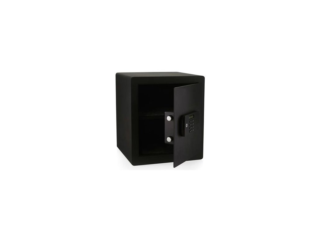 Sejf s elektronickým zámkem s číselnou klávesnicí, LCD displej s modrým podsvícením, funkce alarmu při nesprávném zadání (po 3 pokusech), ocelové dveře se otevírají automaticky po zadání správného kódu, vyztužený ocelový závěs dveří, pancéřované ocelové desky chránící zamykací ústrojí, tloušťka stěny dveří - 4 mm, tloušťka stěny pláště - 2 mm, ocelové závory zámku o průměru 22mm, upozornění na nízký stav napájecích baterií, funkce zapnutí/vypnutí displeje.